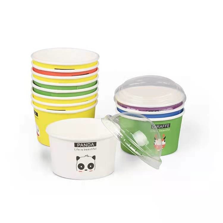 Drukowany przez klienta jednorazowy papierowy kubek do lodów z pokrywką kopułową hurtowo, jednorazowy papierowy kubek do lodów.